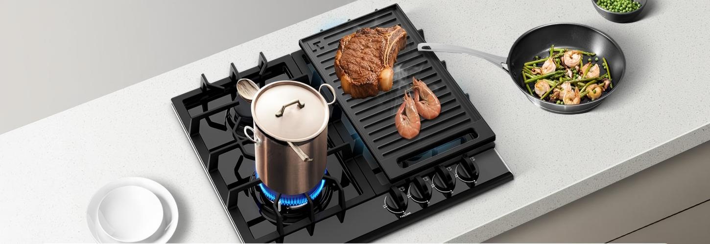 Elegant & Durable Design - Crafted with a sleek black enameled panel, heavy-duty cast iron pan support grates, 4 melt-proof black enameled zinc alloy knobs, and black burner caps. This premium finish is not only stylish but also easy to clean after cooking, ensuring long-lasting beauty and functionality.