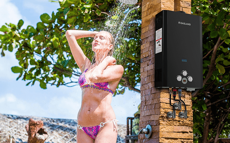- 4.22 GPM/16L Propane Water Heater - With a 4.0 PSI low water pressure start-up, 11,0000BTU/hr output and 4.22GPM flow rate, the water temperature ranges from 109.4°F (43°C) to 55.4°F (13°C). This model is designed for efficiency with 11.5% energy-saving technology, providing endless hot water for outdoor showers.