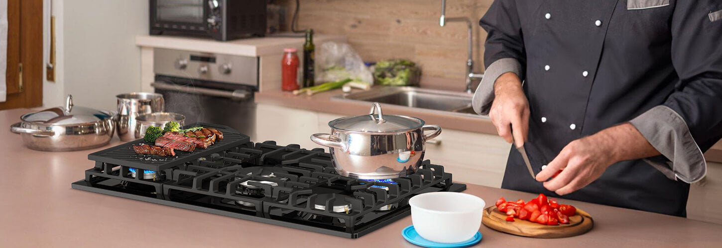 Stability and Control - Heavy-duty cast iron grate ensures stability, it supports hot and heavy cookware while remaining easily movable, and easy to clean and maintain, as this will prolong its lifespan and ensure hygienic cooking conditions. And the reversible griddle has excellent heat conductivity and wide handles for easy cooking, and the responsive zinc alloy knob ensures easy burner control for a comfortable cooking experience.