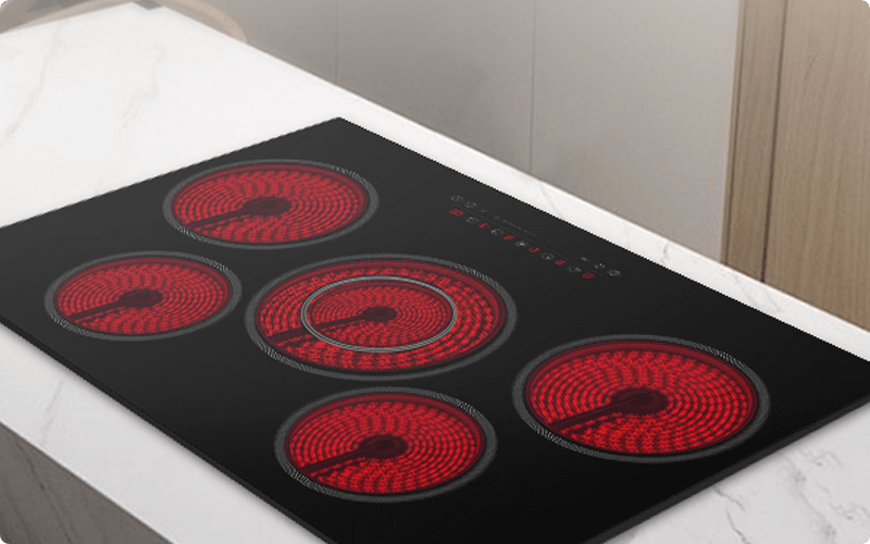 Powerful Heating - It features 5 cooking zones with a powerful dual-ring element (1200W+1200W+1800W+1800W+2200 (1000)W) and 9 heat levels, from simmer to boil for the accurate heating required for your cooking.
