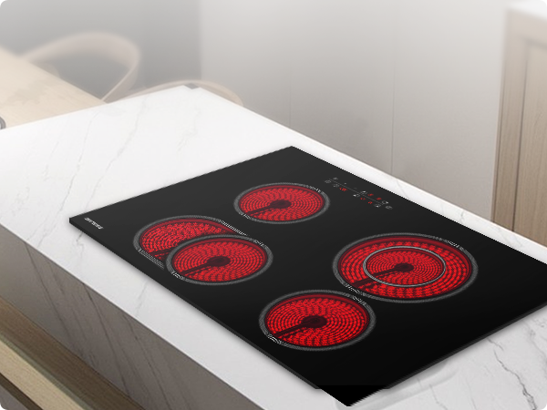 - Sleek & High-quality - The scratch-resistant one-piece microcrystalline glass surface withstands high-temperature differences and thermal shocks. It adds elegance and makes cleaning a breeze. The Clickable touch button ensures easy temperature adjustments for precise heating control.